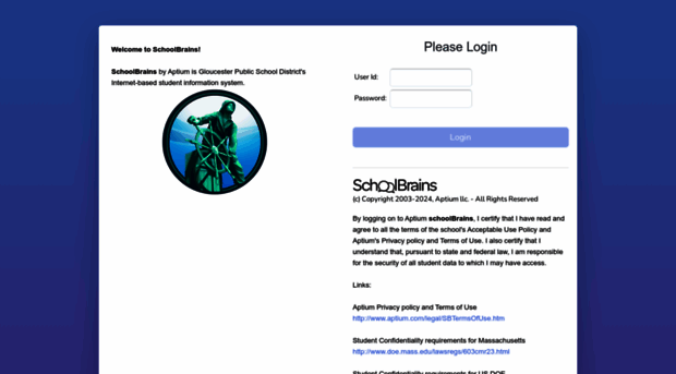 By logging on to Aptium schoolBrains, I certify that I have read and agree to all the terms of the school's Acceptable Use Policy and Aptium's Privacy policy and Terms of Use. I also certify that I u...
