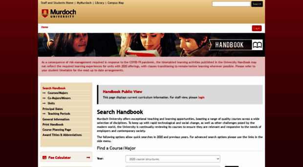 The Murdoch University Handbook is the official source of information about Murdoch University's courses, majors and units.