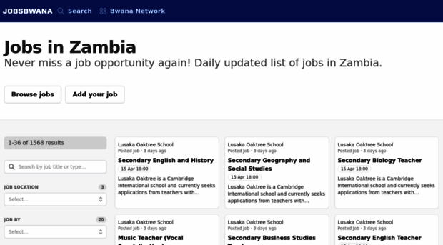 Never miss a job opportunity again! Daily updated list of jobs in Zambia.