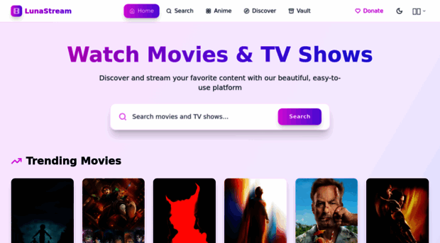 Discover and stream your favorite movies and TV shows Using LunaStream's Stunning, Simple to use platform.