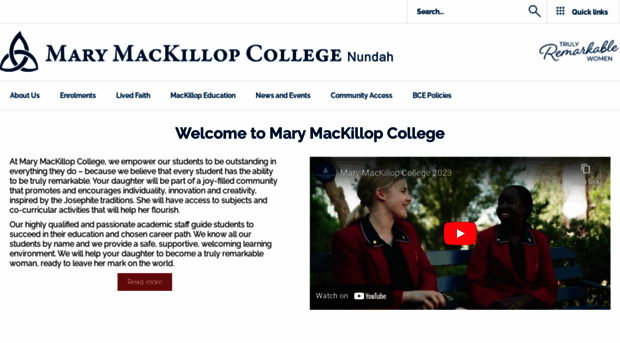 Welcome to Mary MacKillop College - a great place for young women to learn! Girls in Year 7 - 12 enjoy a diverse and innovative curriculum in a Catholic school