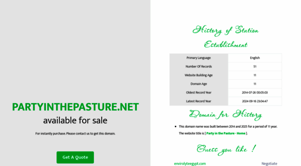 PARTYINTHEPASTURE.NET This domain name is for sale. Owning a suitable domain name will help you achieve greater success in your career. For any business consultation about PARTYINTHEPASTURE.NET, pleas...
