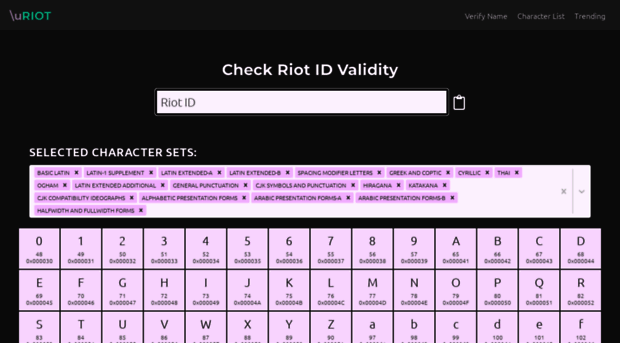 Complete list of valid Riot ID/Valorant name symbols